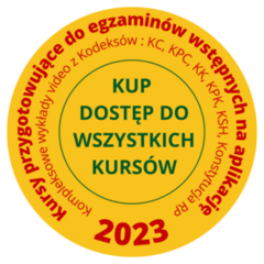 Każdy wykład zawiera kompleksowe omówienie aktu prawnego, szczególnie pod kątem egzaminów wstępnych na aplikację.